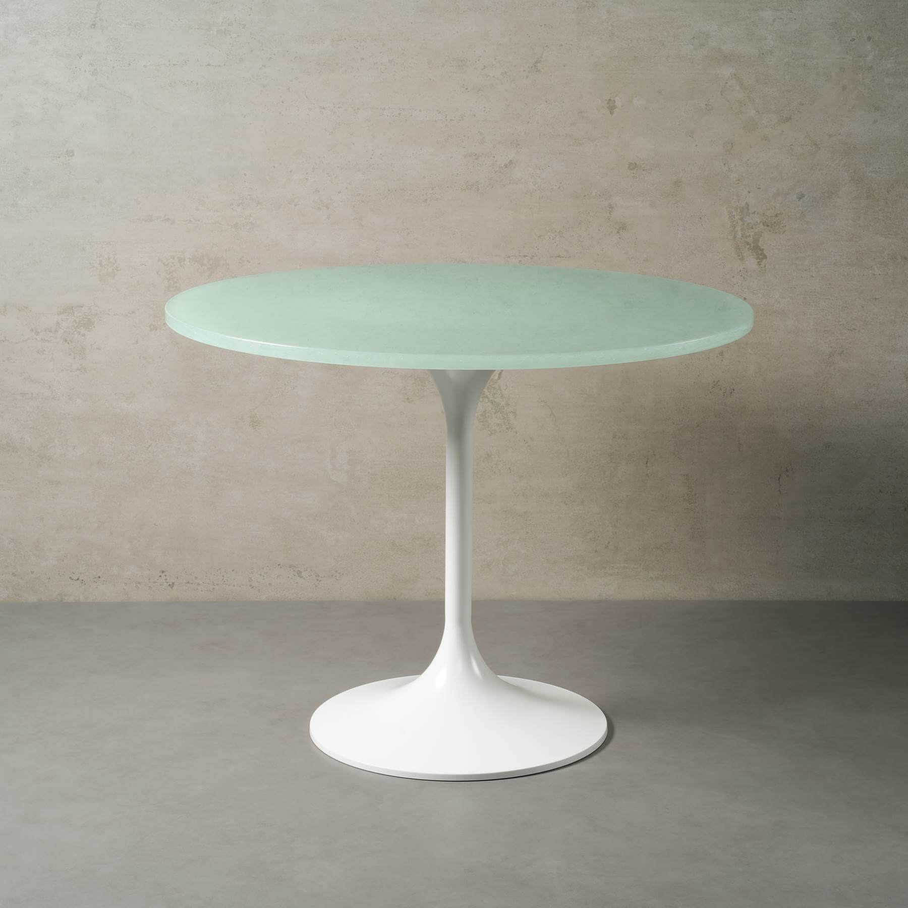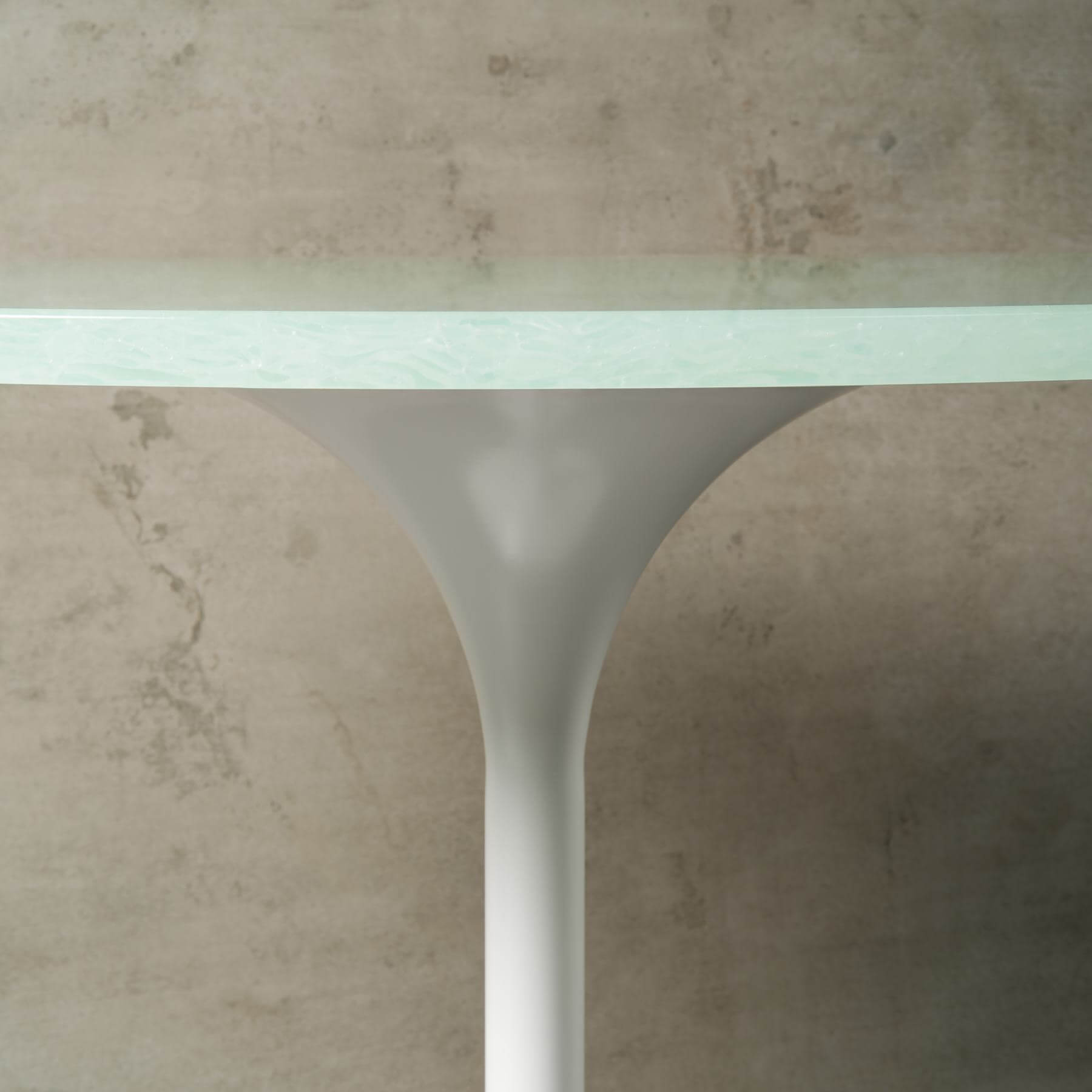 Unser Modell "Tokio" ist ein besonders edler und futuristischer Esstisch mit weißem Gestell aus recyceltem Metall und aufliegender Platte aus MAGNA Glaskeramik. Das Design ist inspiriert an der gleichnamigen, unkonventionellen Stadt in Japan.
