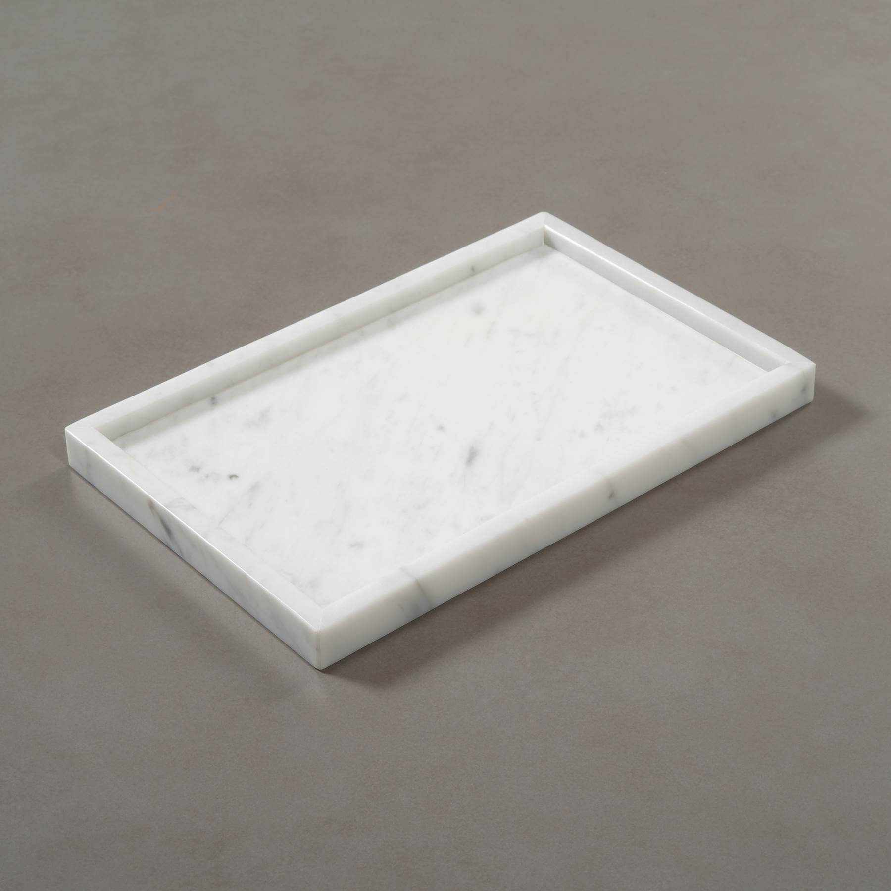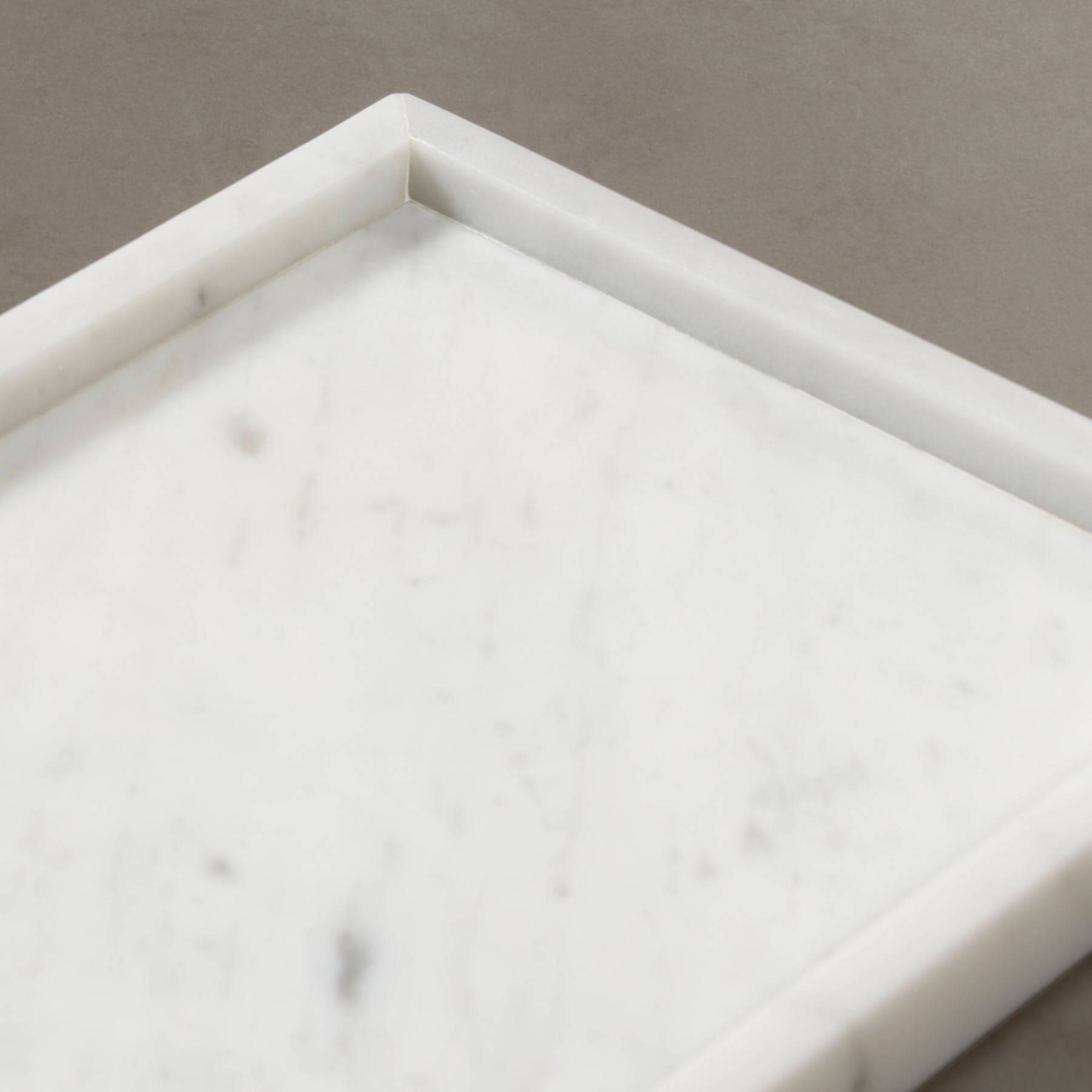 Dieses elegante und minimalistische Tablett, mit einer schmalen Kante, ist inspiriert an dem weltbekannten Carrara Steinbruch in Italien. Carrara in der Toskana ist bekannt für seine renommierte Bildhauerakademie und die hochwertigen Steinbrüche, in denen der Carrara Marmor abgebaut wird. In Blöcken und geometrisch akkurat wird in Carrara Naturstein abgebaut, was uns an dieses rechteckige Serviertablett erinnert.