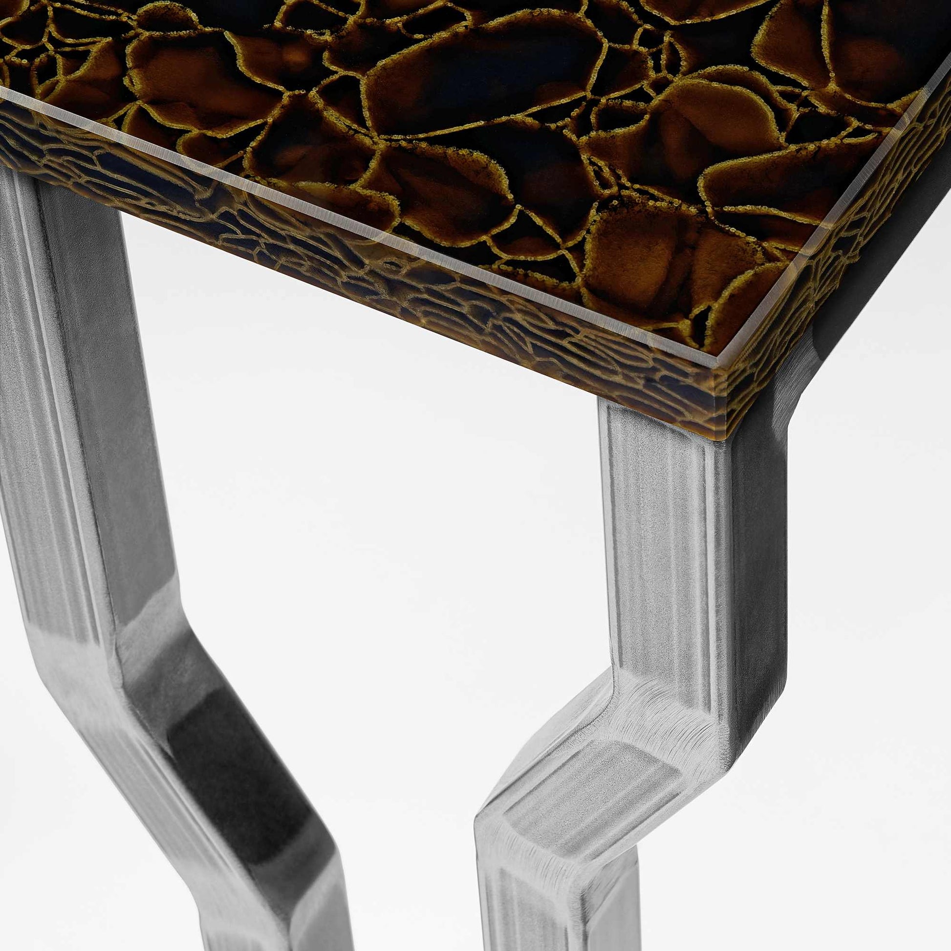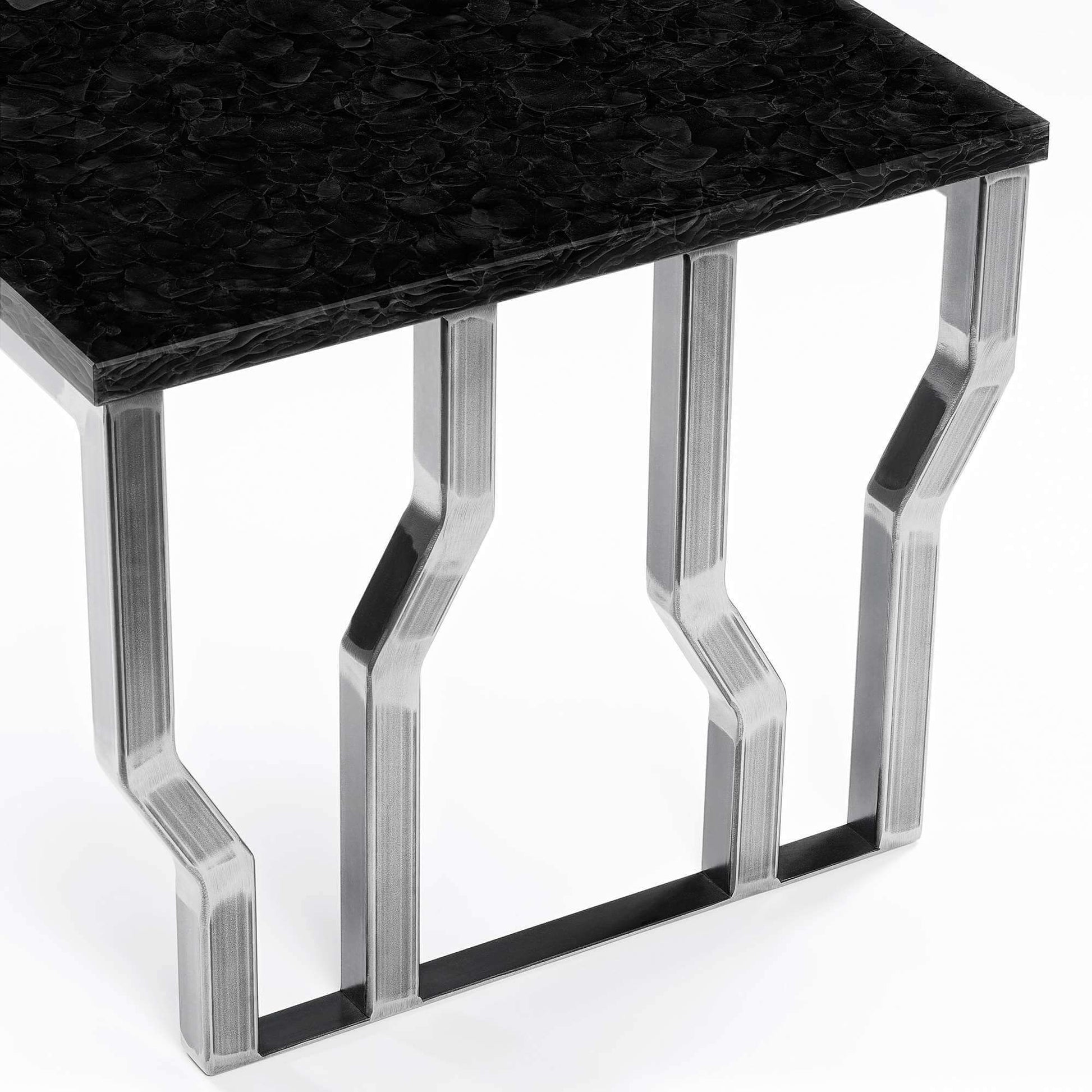 Unser Modell "Silicon Valley" ist ein futuristischer und industrieller Couchtisch, der uns an die elektrischen Leiter auf elektronischen Festplatten erinnert - das sogenannte Rückgrat der Elektronik.