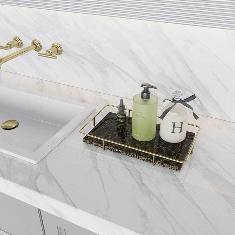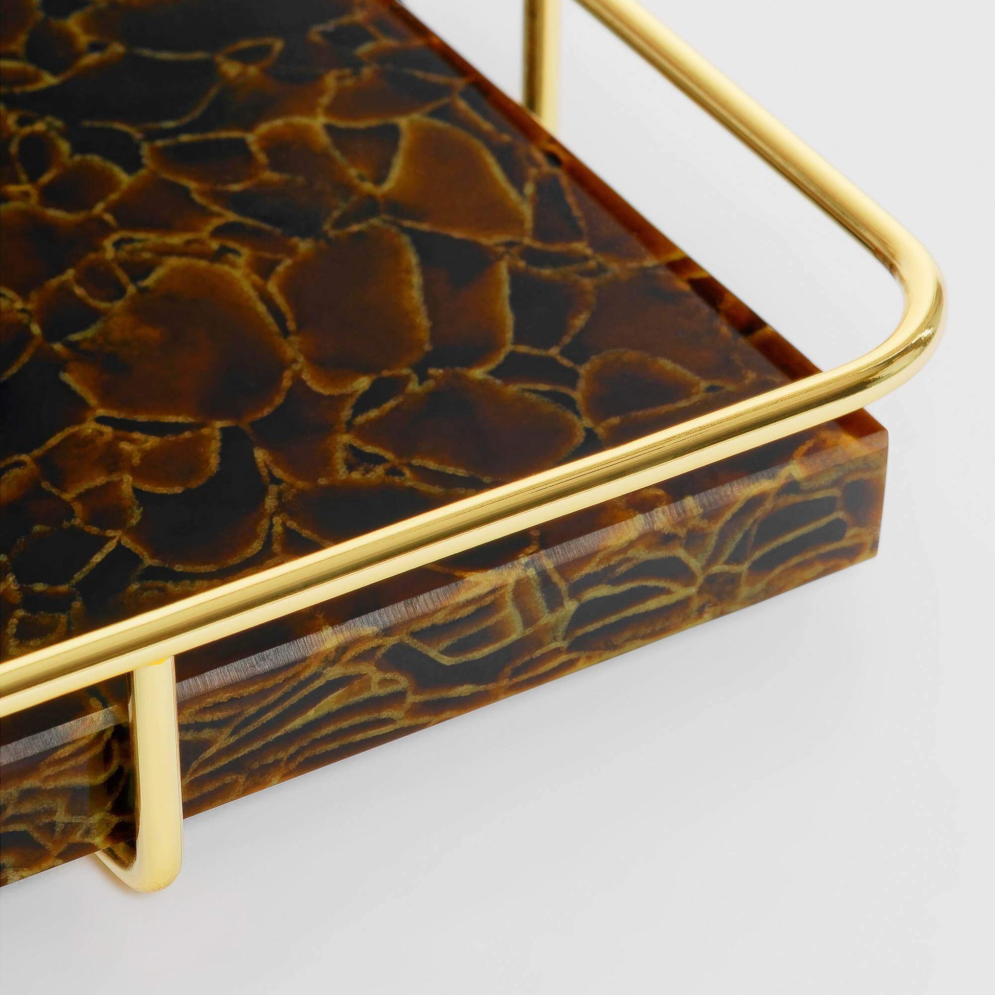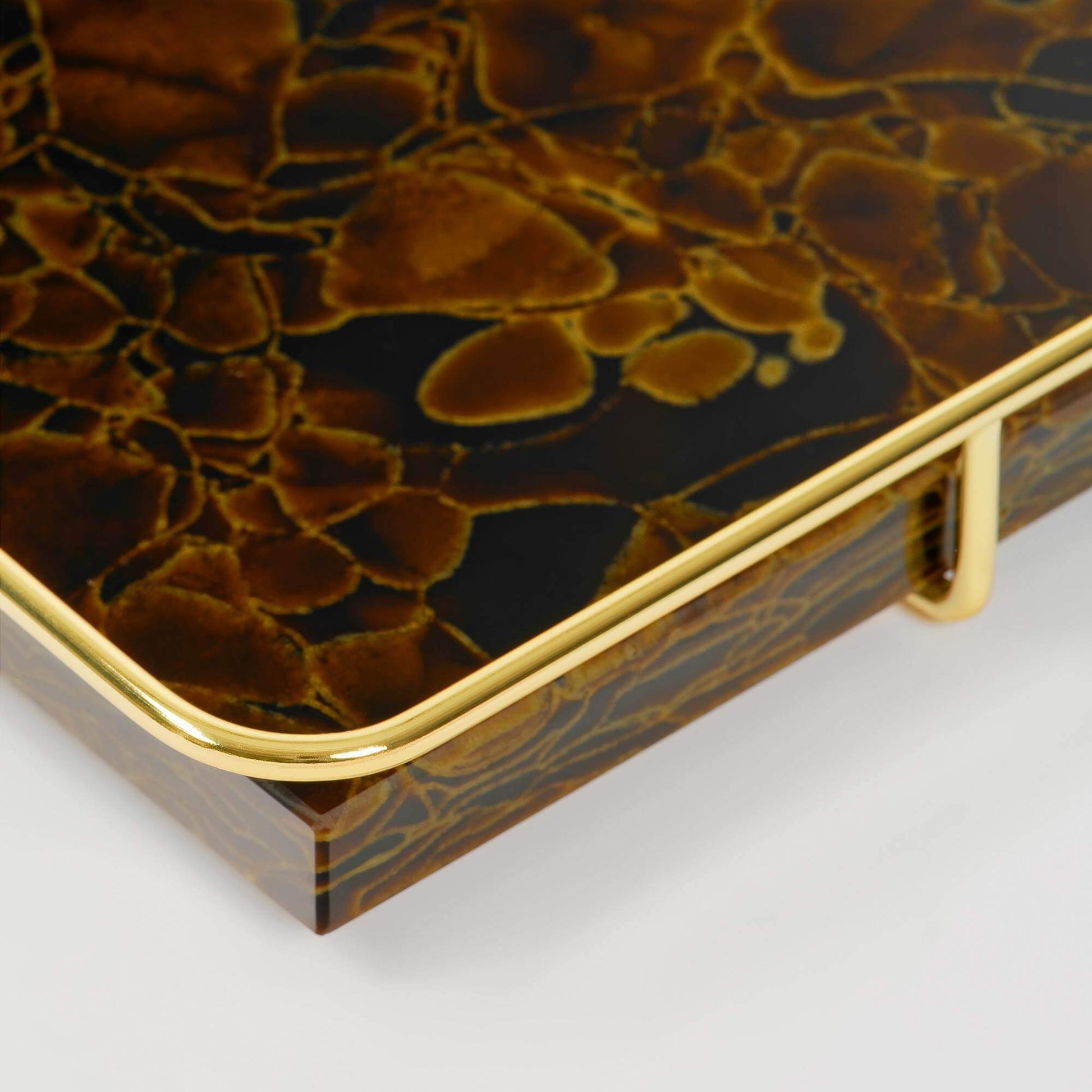 Unser stilvolles Tablett "Cambridge" mit goldfarbenem Rahmen und MAGNA Glaskeramik in einer Farbe Ihrer Wahl ist ideal zur Dekoration im Wohnraum. Die hochwertige Glaskeramik ist poliert und passgenau in den goldfarbenen Rahmen eingefasst.