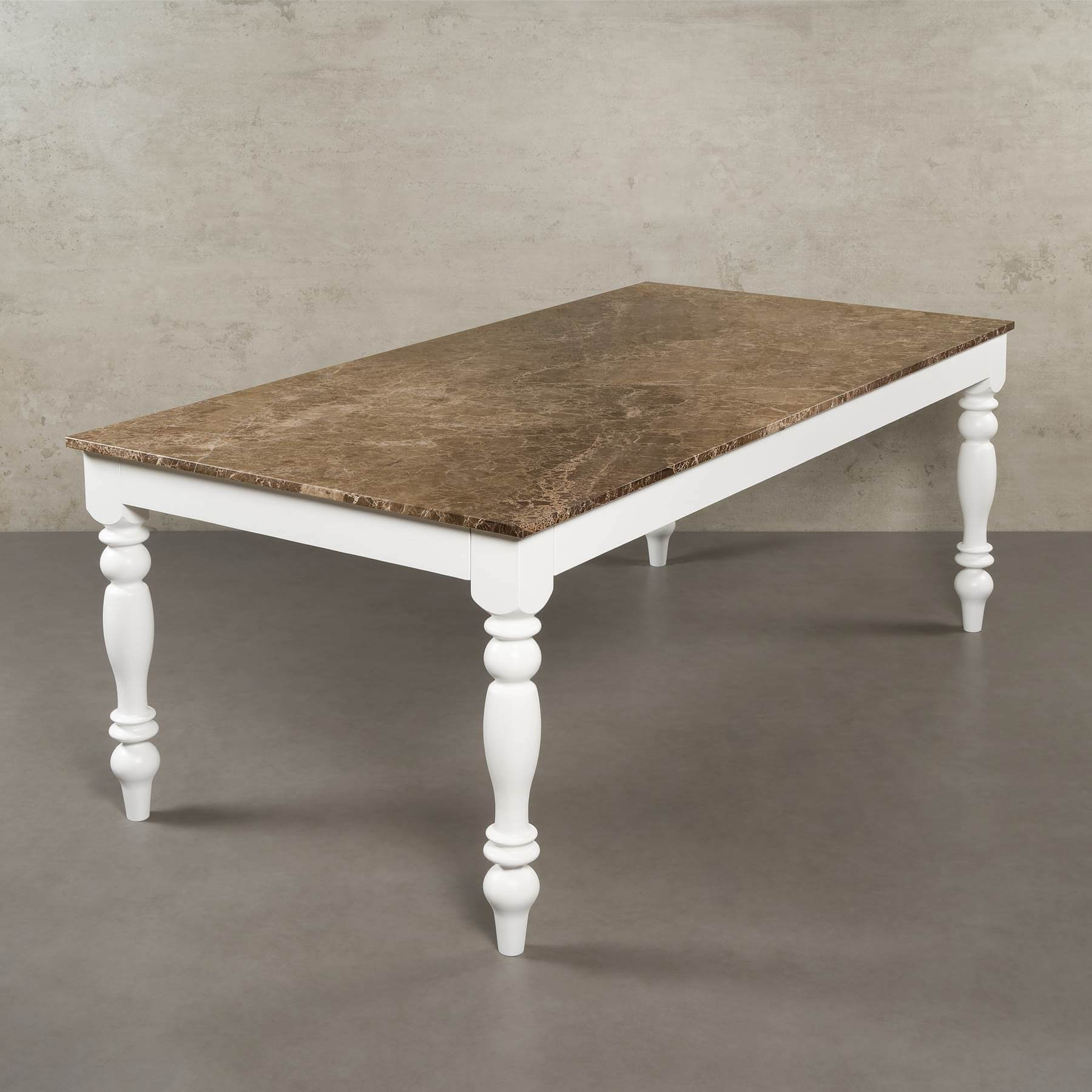 Unser Modell "Louisiana" ist ein Esstisch, der die Gelassenheit und Eleganz der Südstaaten versprüht. Das moderne Design wurde mit einer Prise Vintage-Charme versehen, der durch die massiven, gedrechselten Beine subtil zum Vorschein kommt. Mit einem Gestell aus natürlichem Eichenholz und einem echten Naturstein als Tischplatte bietet Ihnen dieser Tisch Luxus und Nachhaltigkeit in einem - eine nicht oft vereinbare Kombination.
