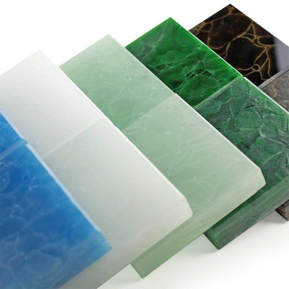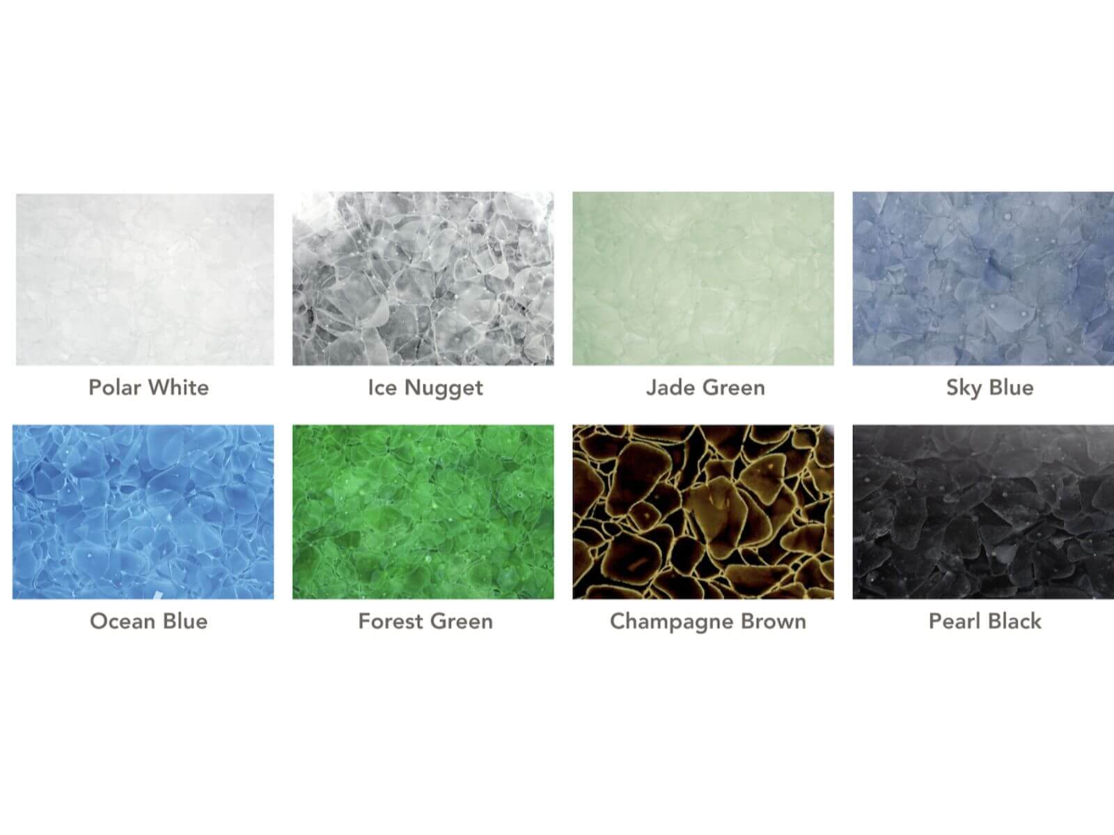 Es handelt sich um die Farben Ice Nugget, Polar White, Jade Green, Forest Green, Champagne Brown und Pearl Black. Sie können nun die besondere Haptik und die schollenartige Glaskeramik in Ruhe erleben und anschließend eine fundierte Entscheidung treffen, um Ihr persönliches und ganz besonderes Unikat bei uns in Auftrag zu geben.