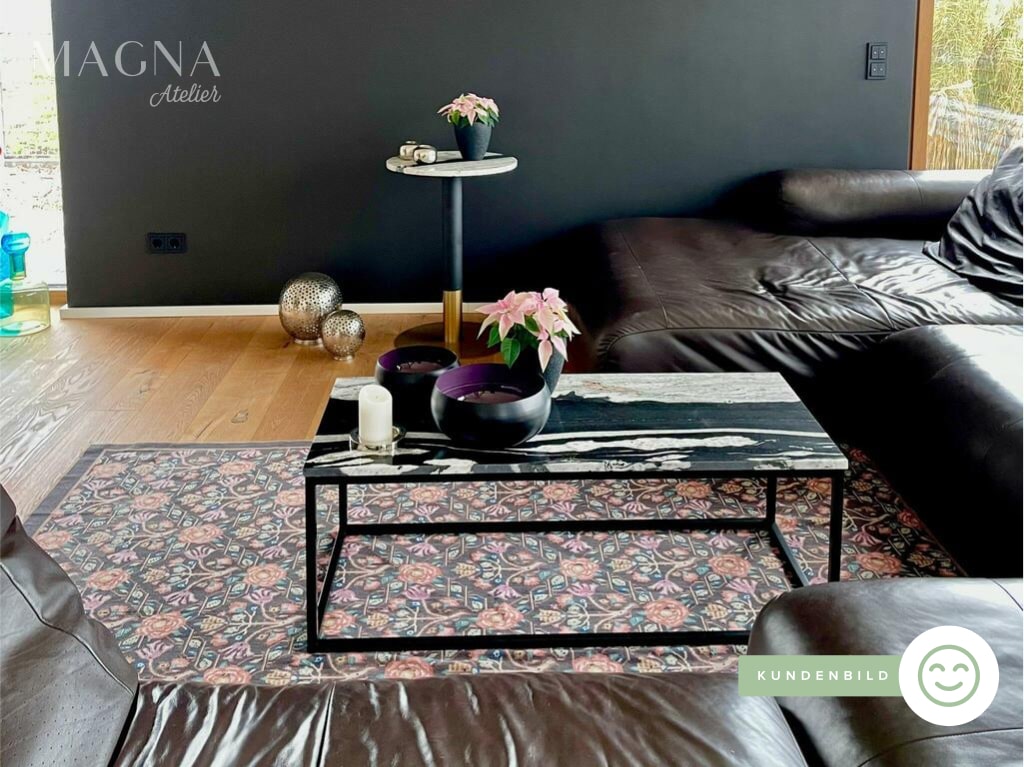 Das Modell "Göteborg" besticht durch das Zusammenspiel der extravaganten Natursteinplatte und dem minimalistischen Gestell aus überwiegend recyceltem Metall. Das zeitlose Design erinnert an die schwedische Großstadt Göteborg und deren unzählige Kanäle im typisch holländischen Stil.