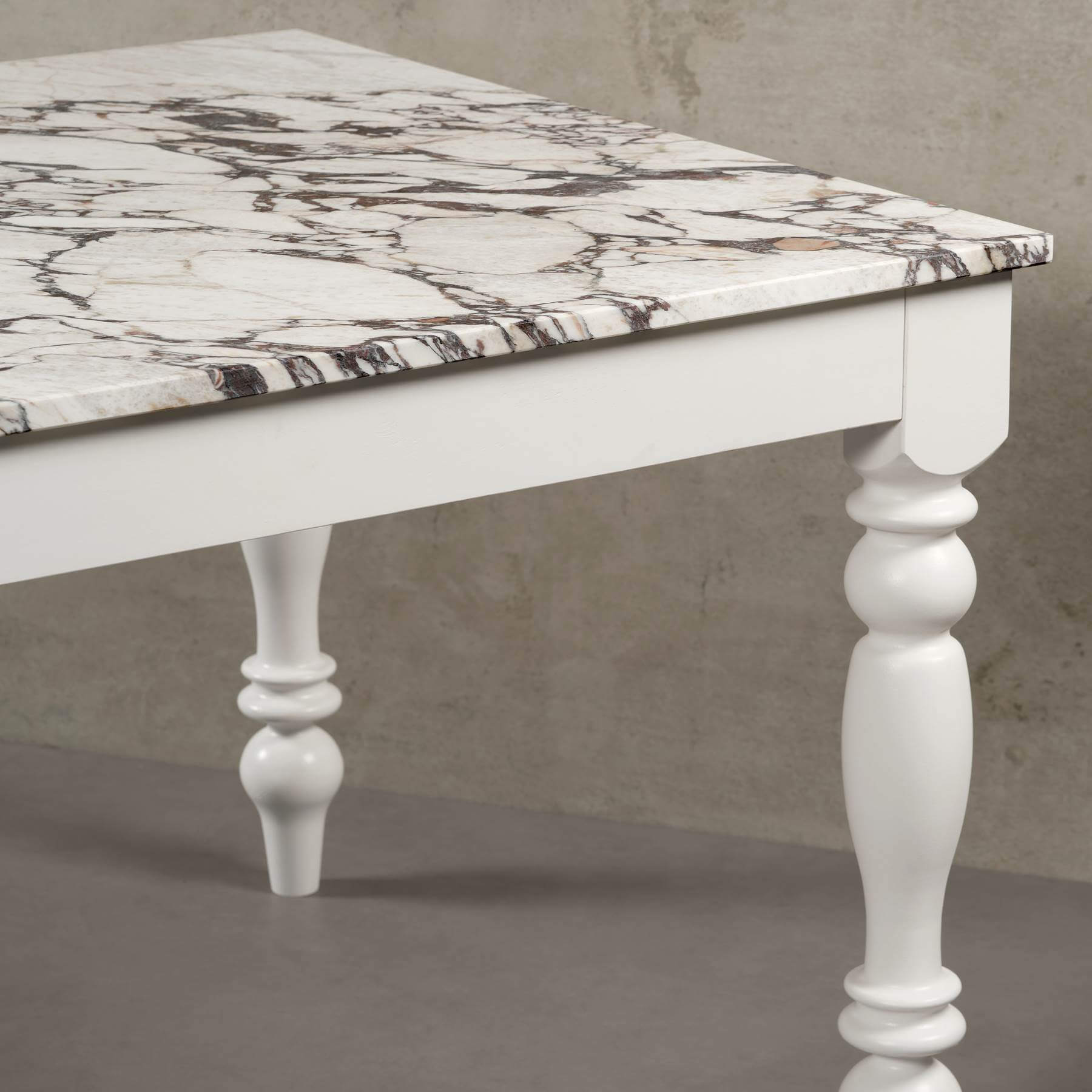 Unser Modell "Louisiana" ist ein Esstisch, der die Gelassenheit und Eleganz der Südstaaten versprüht. Das moderne Design wurde mit einer Prise Vintage-Charme versehen, der durch die massiven, gedrechselten Beine subtil zum Vorschein kommt. Mit einem Gestell aus natürlichem Eichenholz und einem echten Naturstein als Tischplatte bietet Ihnen dieser Tisch Luxus und Nachhaltigkeit in einem - eine nicht oft vereinbare Kombination.
