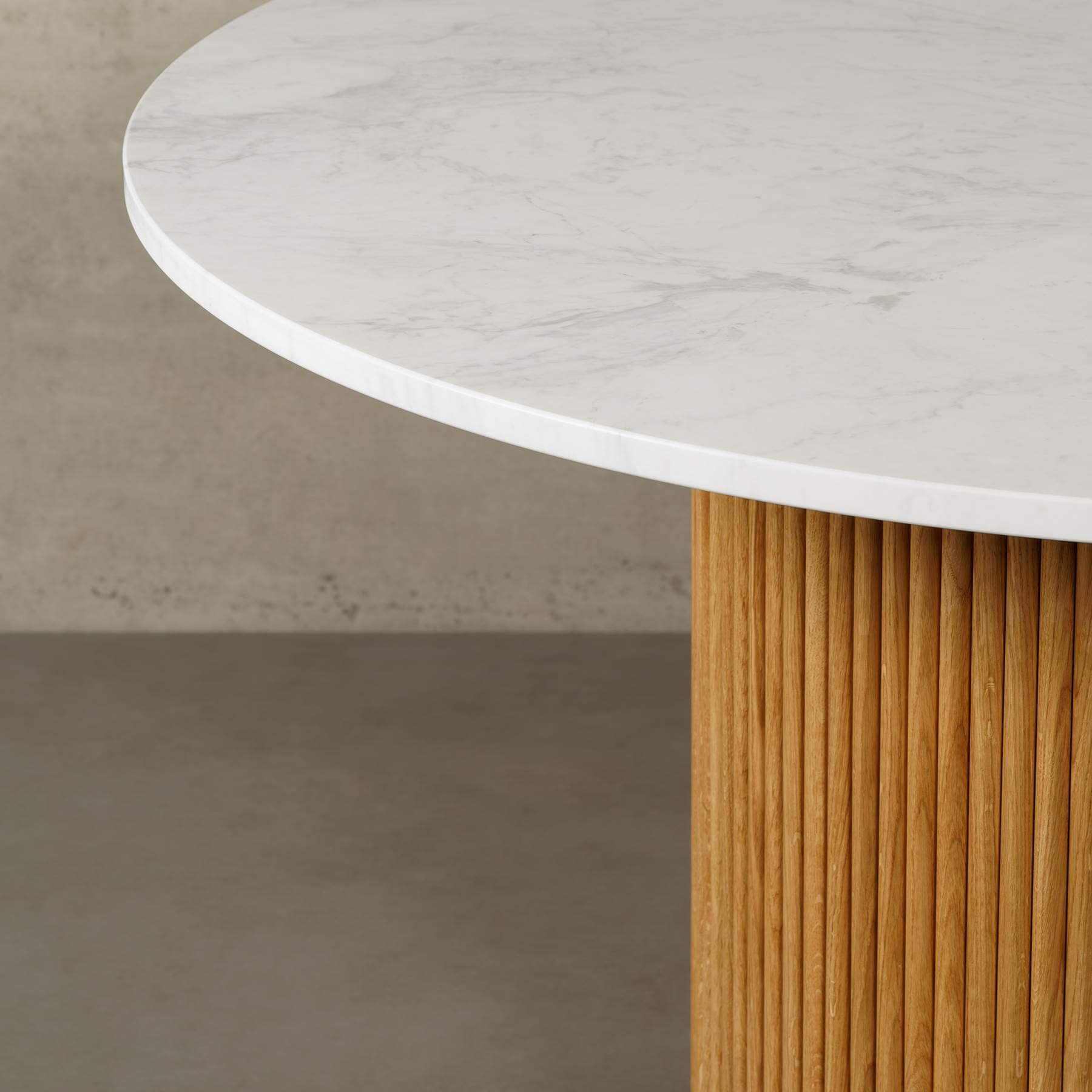 Unser Modell "Victoria" ist ein besonders edler und nachhaltiger Esstisch mit einem Holzgestell aus hochwertigem Eichenholz. Das Design ist inspiriert an der schönen Stadt Victoria in British Columbia, Kanada. Dort werden vermehrt Skyscraper mit Holzfassade gebaut. Dieser Tisch mit einer Platte aus echtem Naturstein erinnert uns an diese nachhaltige und trotzdem sehr futuristische Bauweise in Victoria.