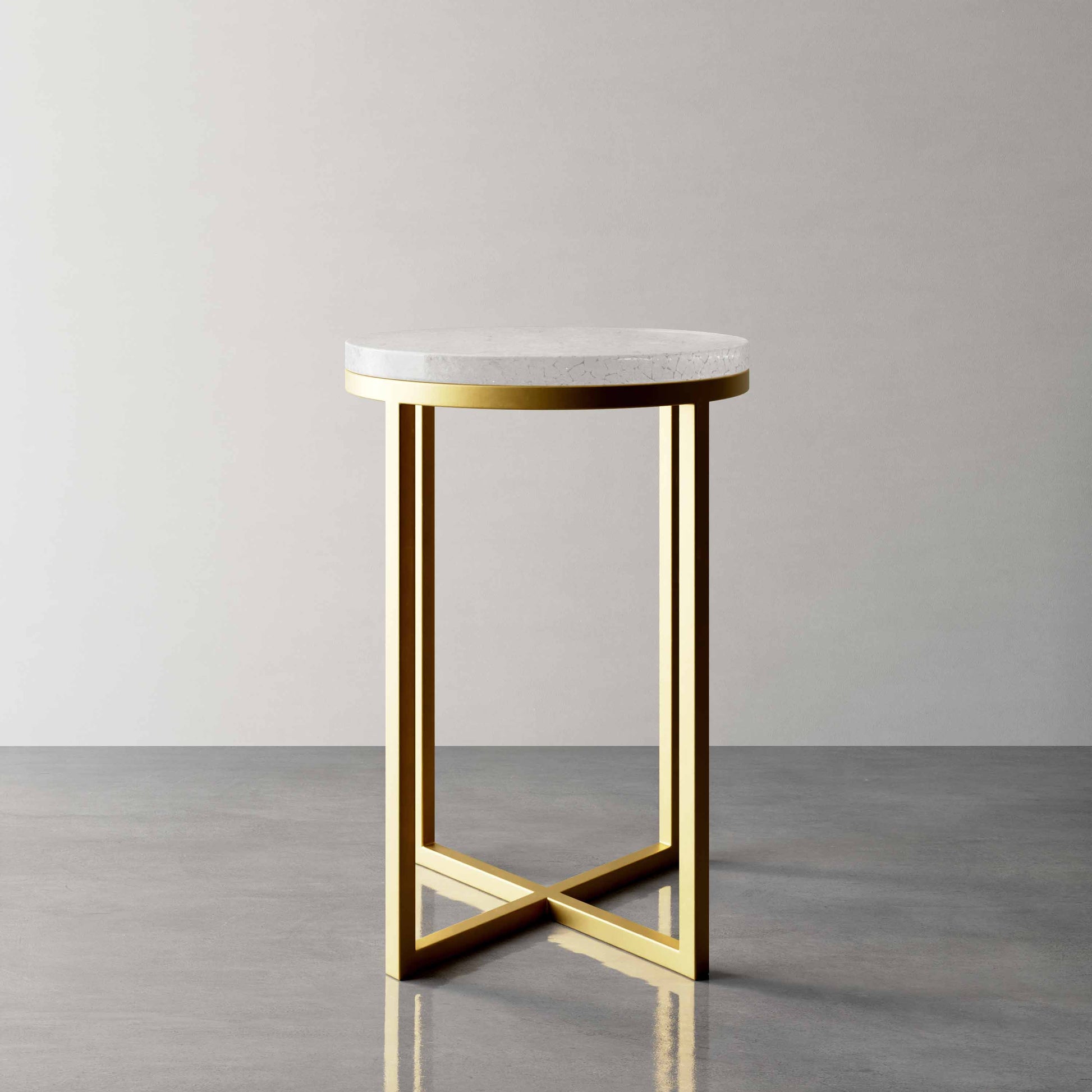 Unser Modell "Monte" ist ein filigraner und eleganter Beistelltisch, der durch sein zeitloses Design überzeugt. Das zarte, goldene Gestell aus recyceltem Metall überlässt der Platte aus MAGNA Glaskeramik die Hauptrolle. Durch seine langen Beine hat das Design den Namen "Monte" erhalten, inspiriert an der Bergstadt Monte, auf der portugiesischen Insel Madeira.