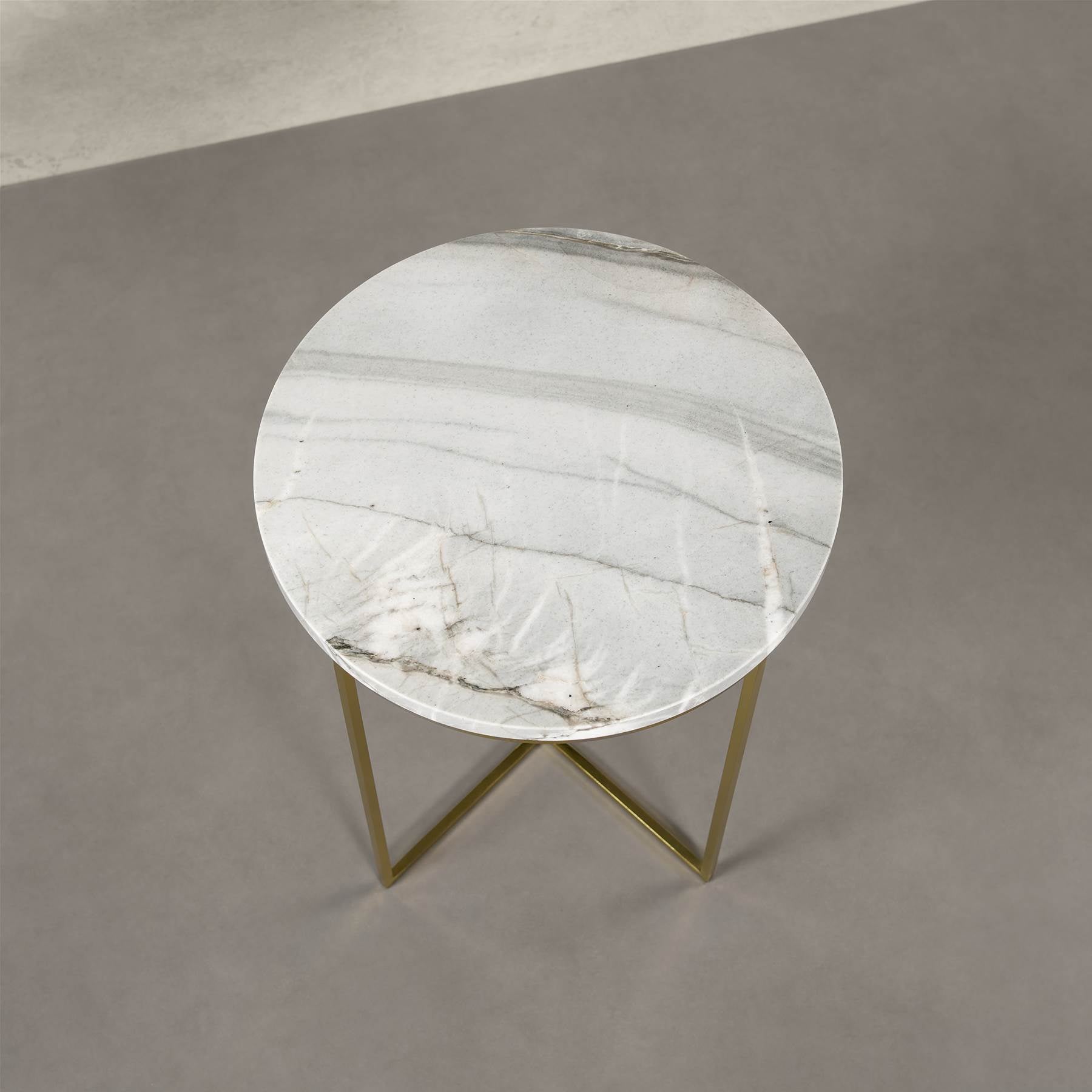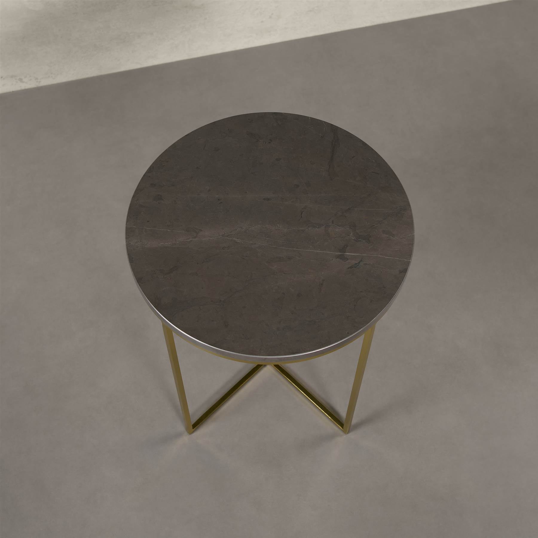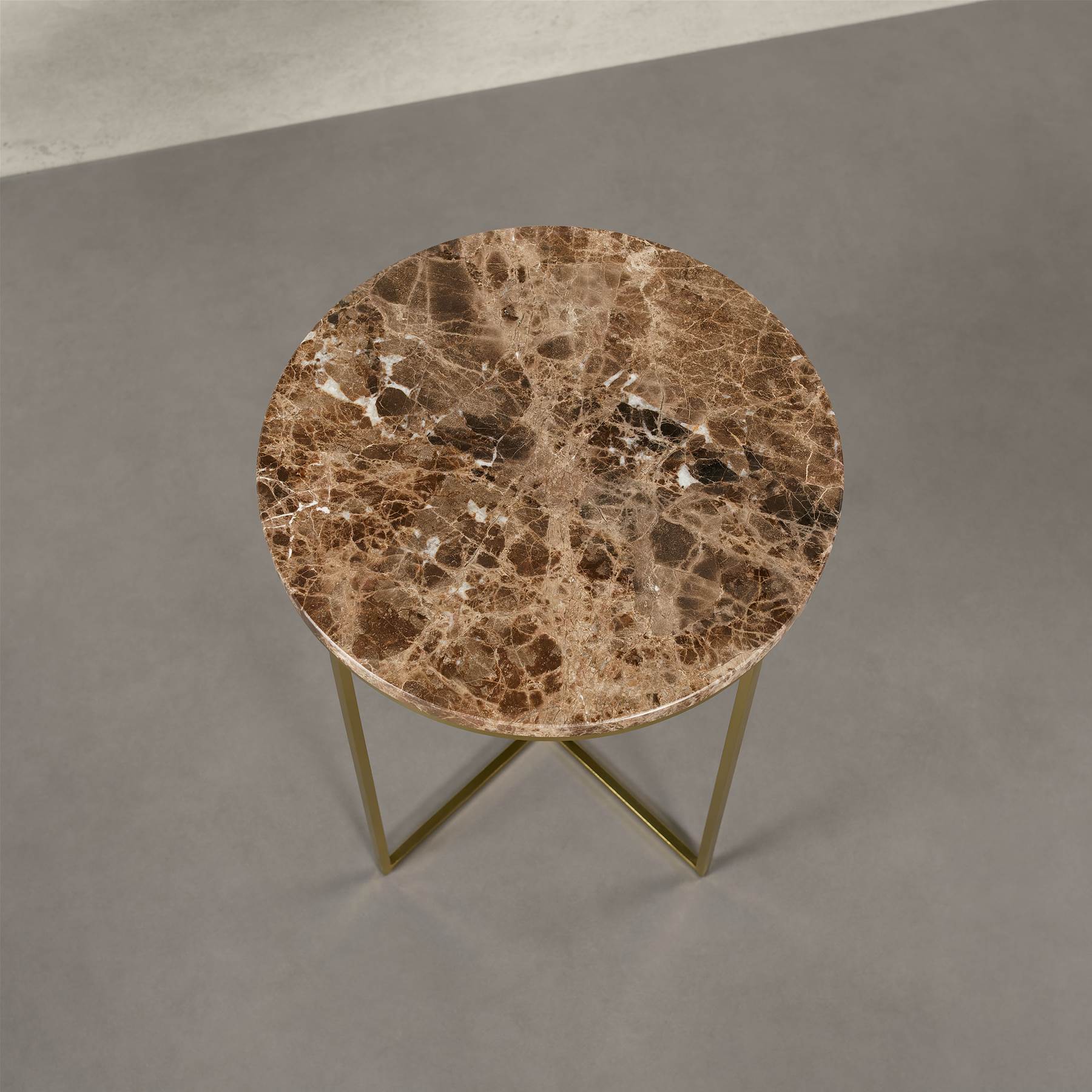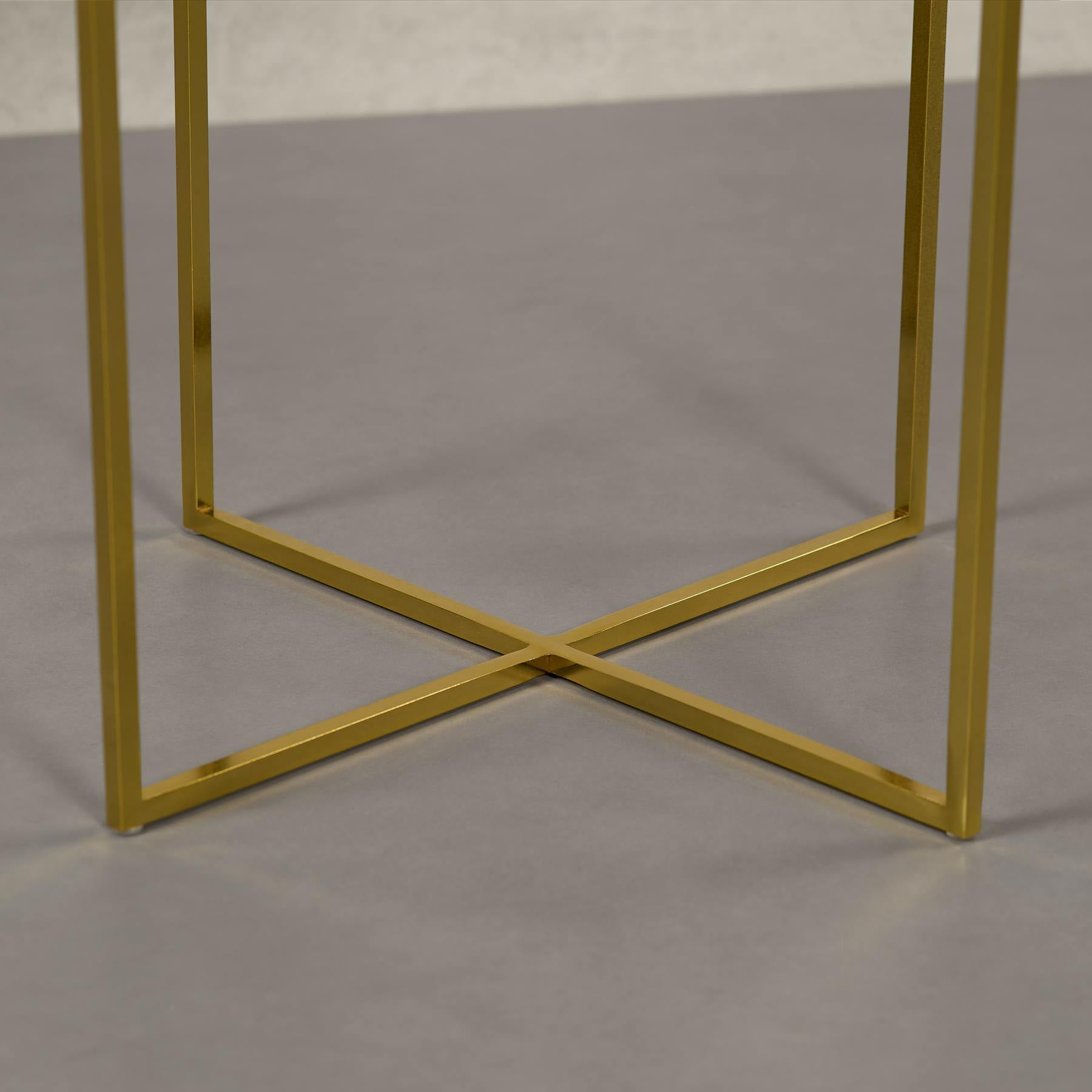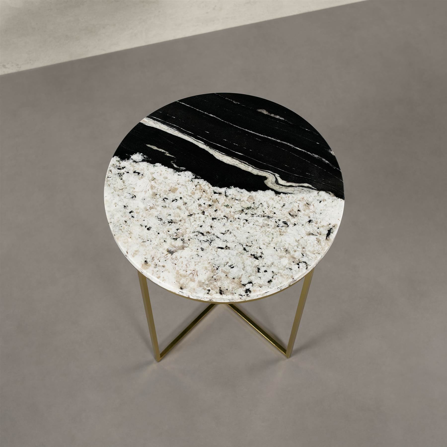 Unser Modell "Monte" ist ein filigraner und eleganter Beistelltisch, der durch sein zeitloses Design überzeugt. Das zarte, goldene Gestell aus recyceltem Metall unterstreicht die natürliche Schönheit des Natursteins. Durch seine langen Beine hat das Modell den Namen "Monte" erhalten, benannt nach der Bergstadt Monte, auf der portugiesischen Insel Madeira.
