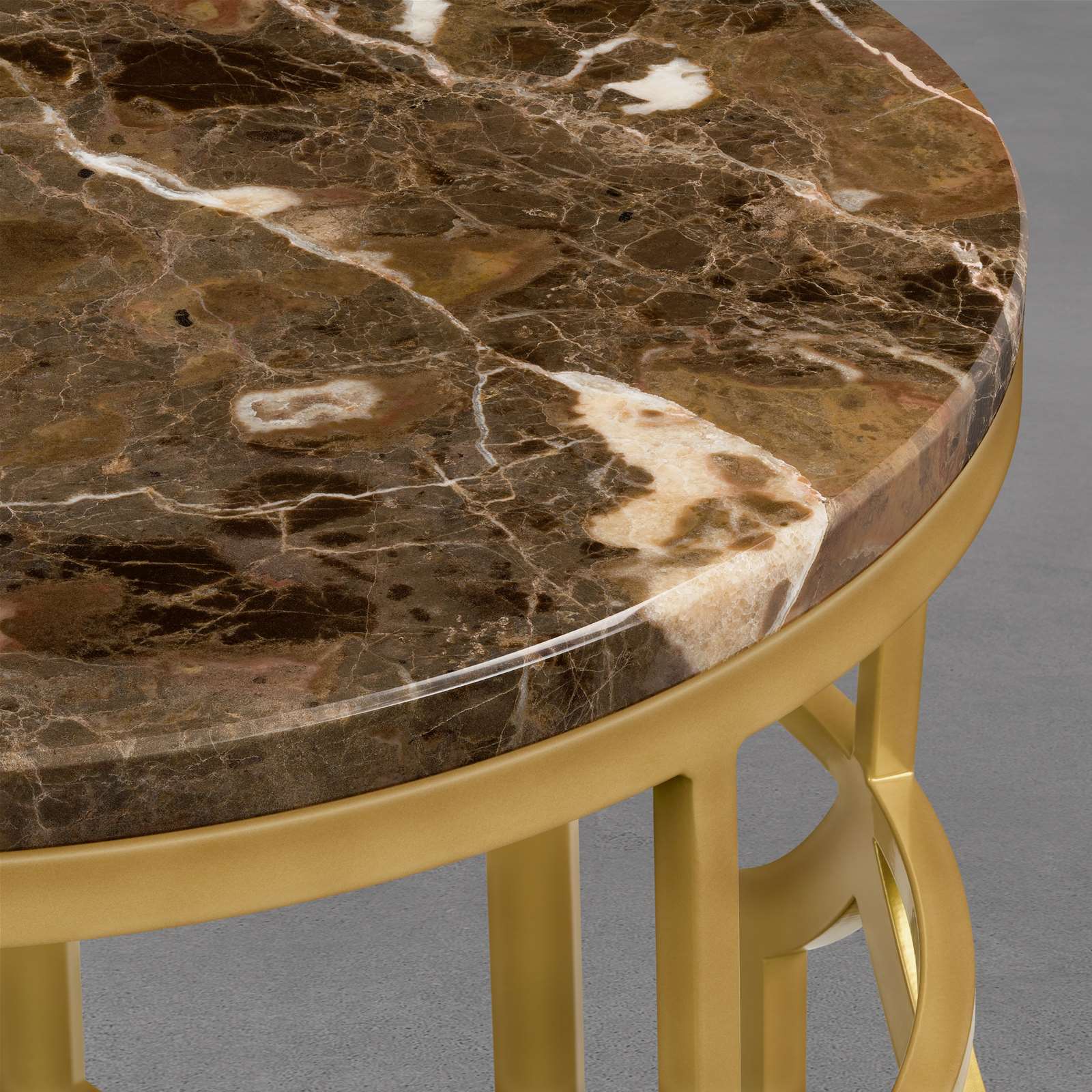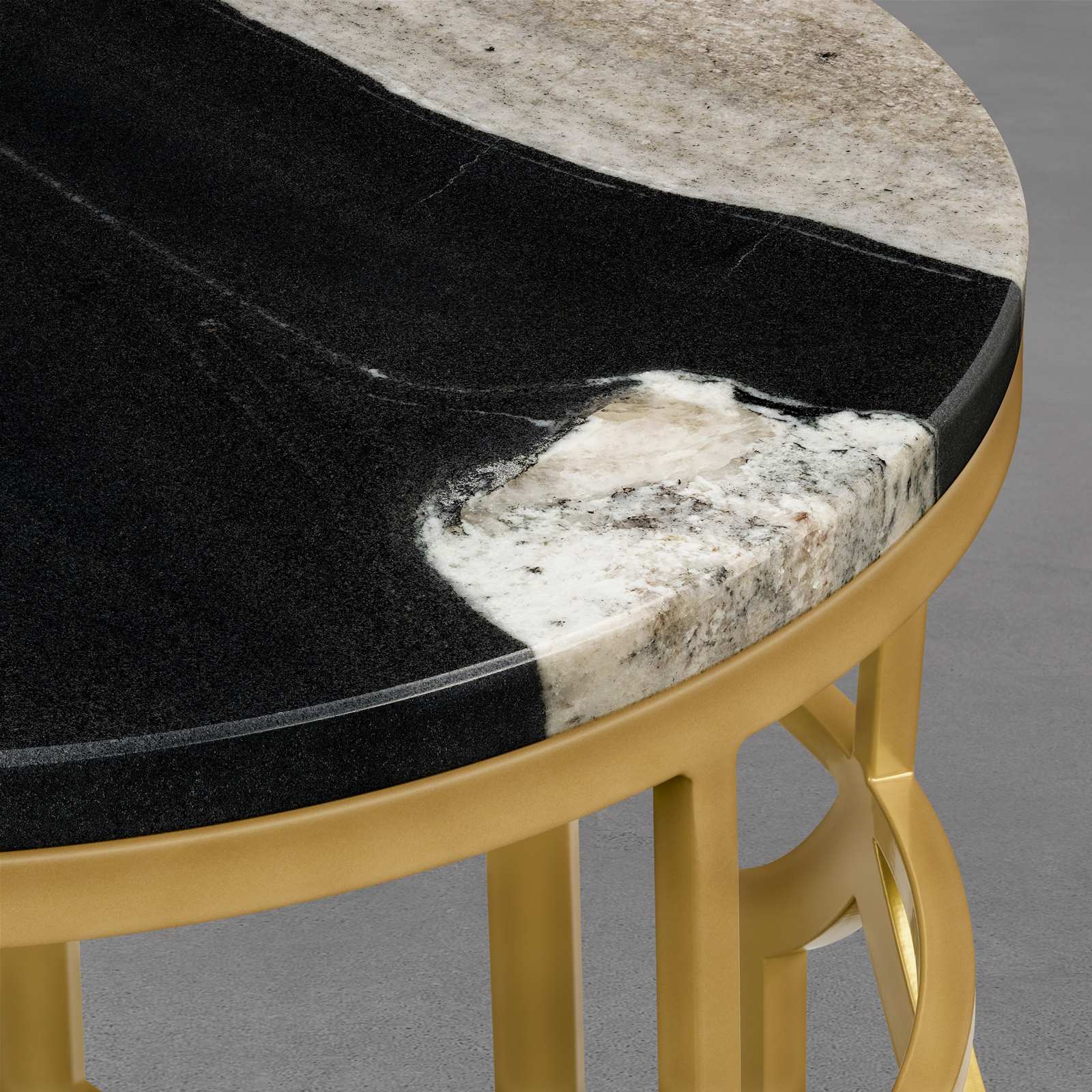Unser Modell "Mumbai" ist exotisch, extravagant und pulsierend. Der Beistelltisch ist inspiriert an der indischen Hauptstadt des Bundesstaates Maharashtra. Das ausgefallene, goldene Gestell des Tisches besteht aus überwiegend recyceltem Metall.