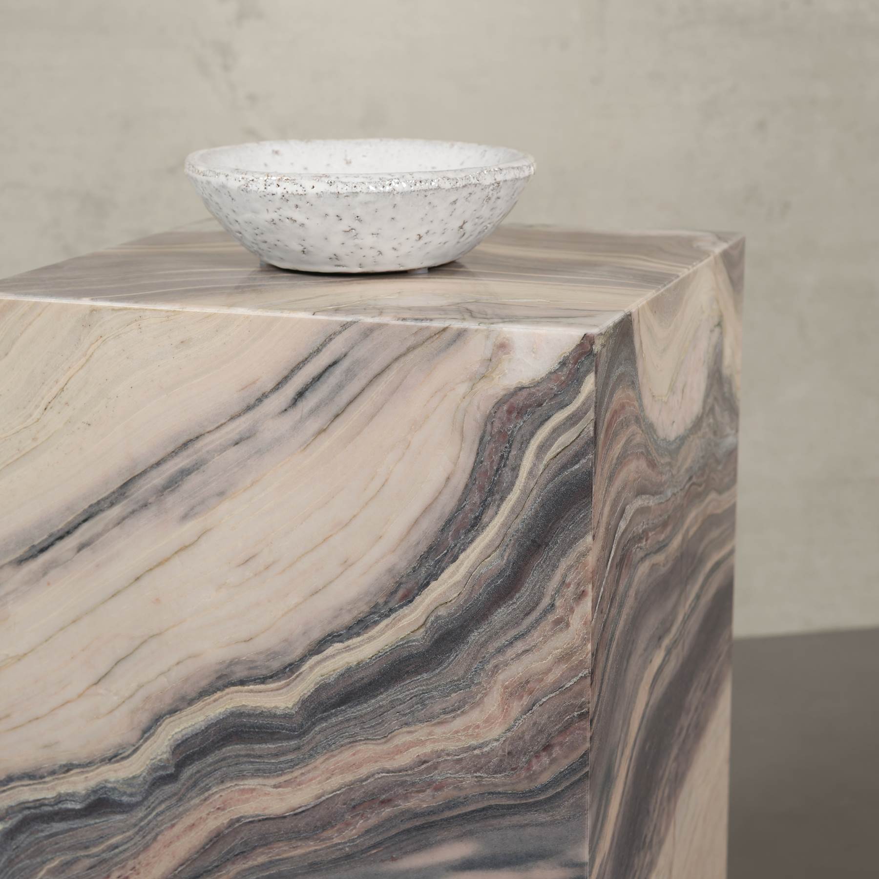 Das Modell "New York" ist sehr hochwertig verarbeitet und besteht zu 100 % aus echtem Naturstein. Die massiven Platten sind im rechten Winkel geklebt und gefast, sodass der Cube eine extrem hochwertige Oberfläche besitzt, die sich sanft anfühlt. Die moderne Form von New York hat dem Cube den Namen der gleichnamigen Stadt verliehen, die sich durch die Skyline aus Wolkenkratzern auszeichnet. Der New York Cube ist Teil unserer Exclusive Line, die sich durch limitierte und besonders exotische Natursteine auszeichnet.