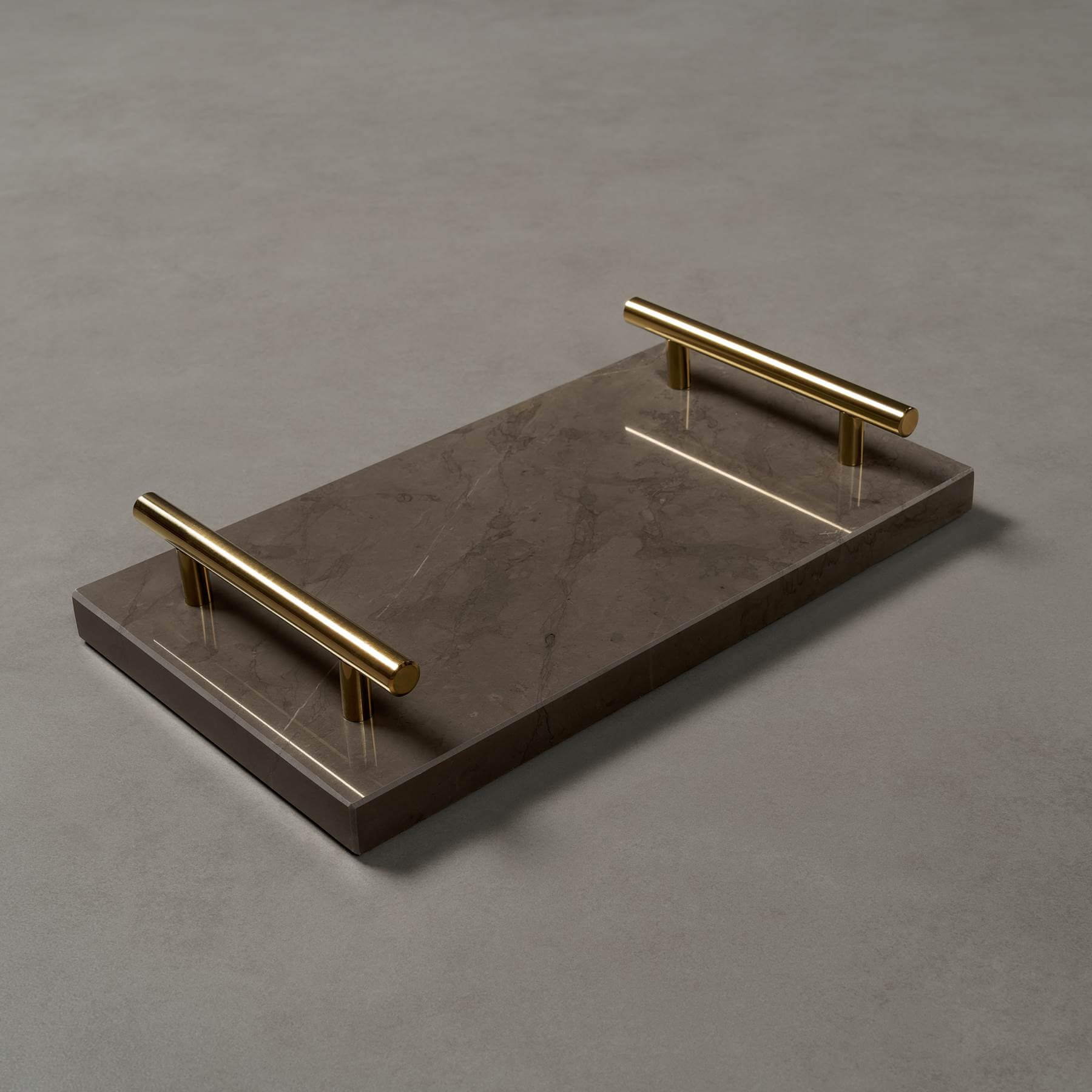 Unser Notting Hill ist ein stilvolles Tablett mit goldfarbenen Griffen und einem polierten Naturstein Ihrer Wahl. Das Tablett im englischen Stil eignet sich ideal zur Dekoration im Wohnzimmer oder Badezimmer.
