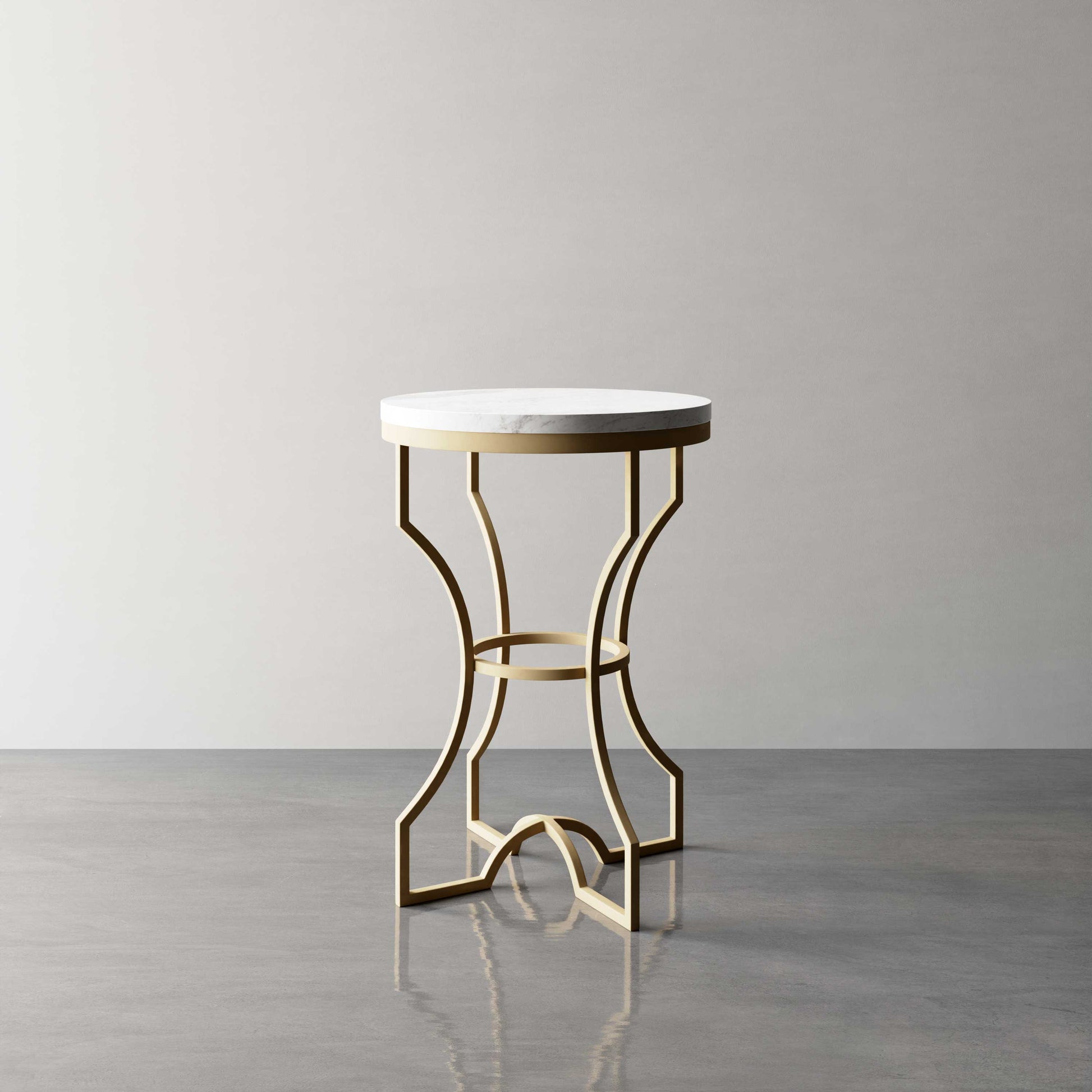 Unser Modell "Porto" ist ein eleganter und filigraner Beistelltisch, der an der gleichnamigen, verwinkelten Küstenstadt inspiriert ist. Das Gestell wurde hauptsächlich aus recyceltem Metall hergestellt.