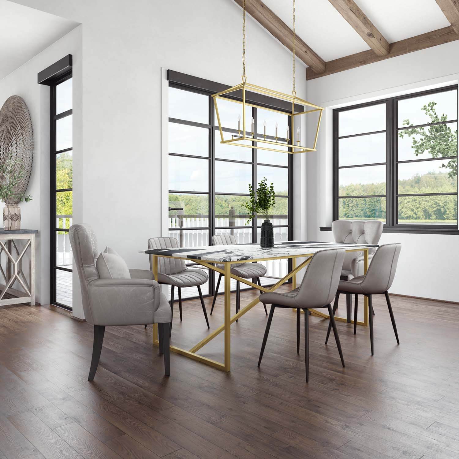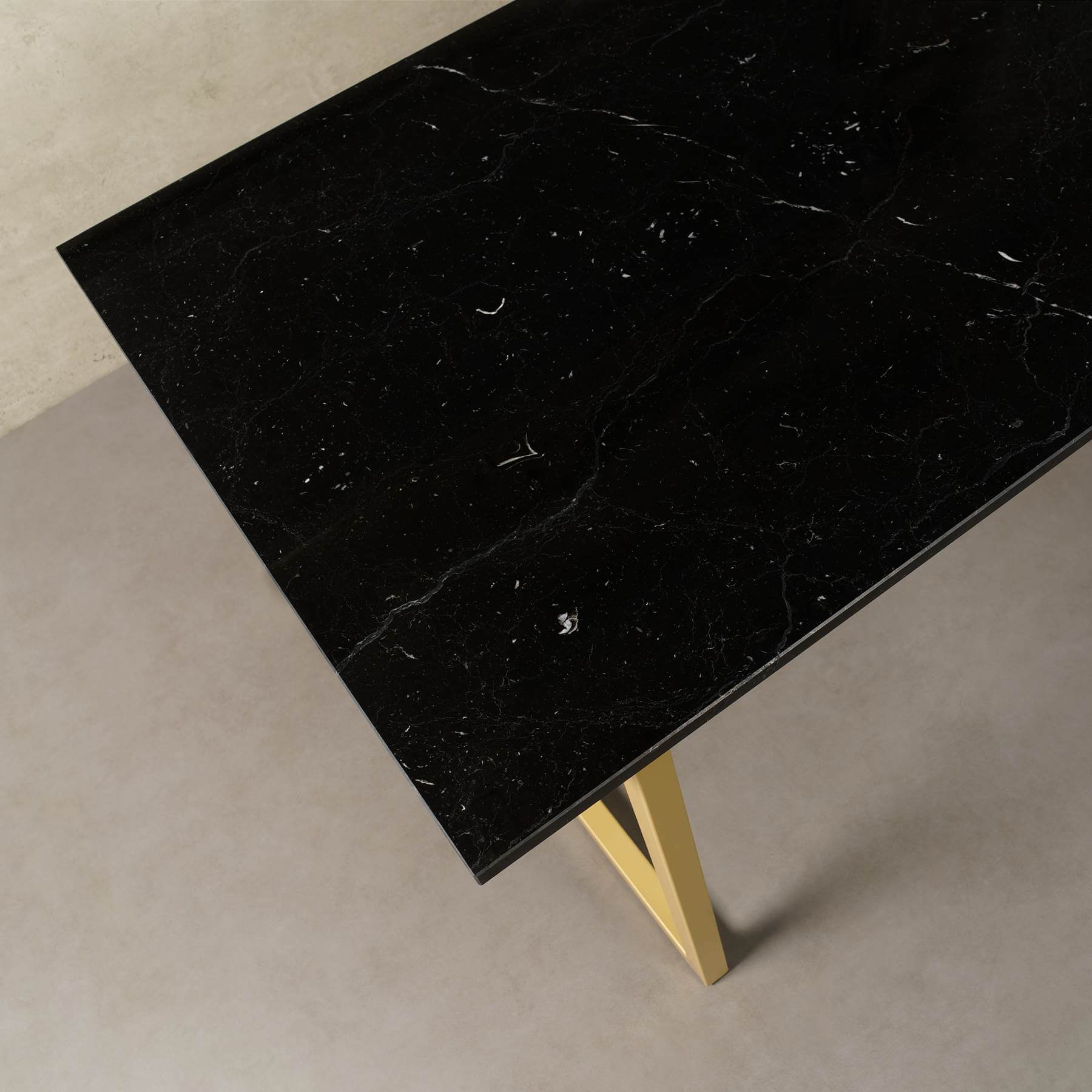 Elegant, zeitlos und luxuriös ist unser Modell "Prag". Dieser große Esstisch mit goldfarbenem Gestell aus recyceltem Metall versprüht einen neuzeitlichen und zugleich klassischen Charme, der uns an die "Goldene Stadt" in Tschechien erinnert.