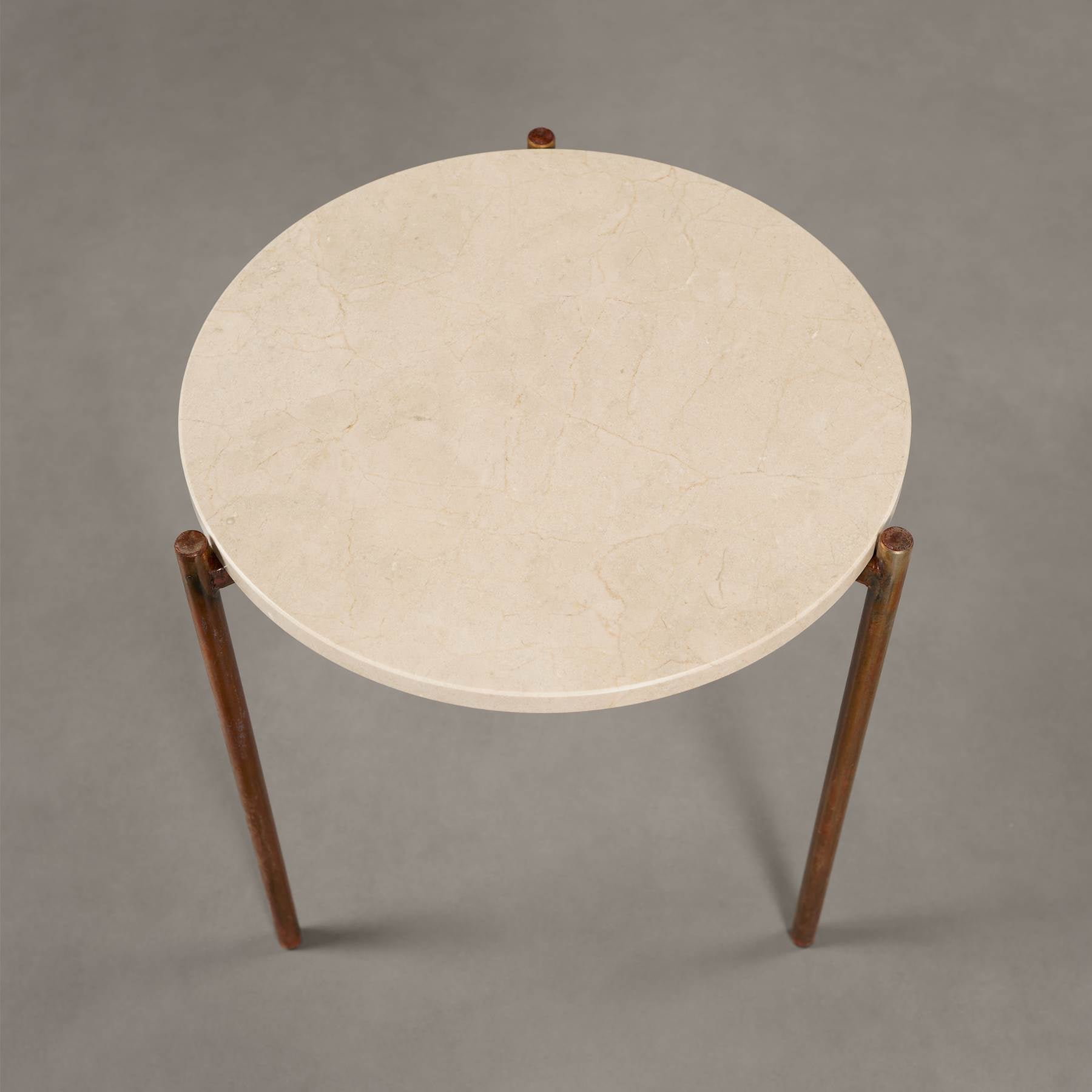 Unser Modell "Rom" ist ein filigraner und zeitloser Beistelltisch, der durch das Zusammenspiel der extravaganten, historischen Natursteinplatte und dem minimalistischen Gestell in Rostoptik überzeugt. Die prächtige Natursteinplatte im Zusammenspiel mit dem rostfarbenen Metallgestell erinnert uns an die Weltstadt Rom mit ihrem unvergleichlichen Angebot an historischen und architektonischen Prachtwerken.